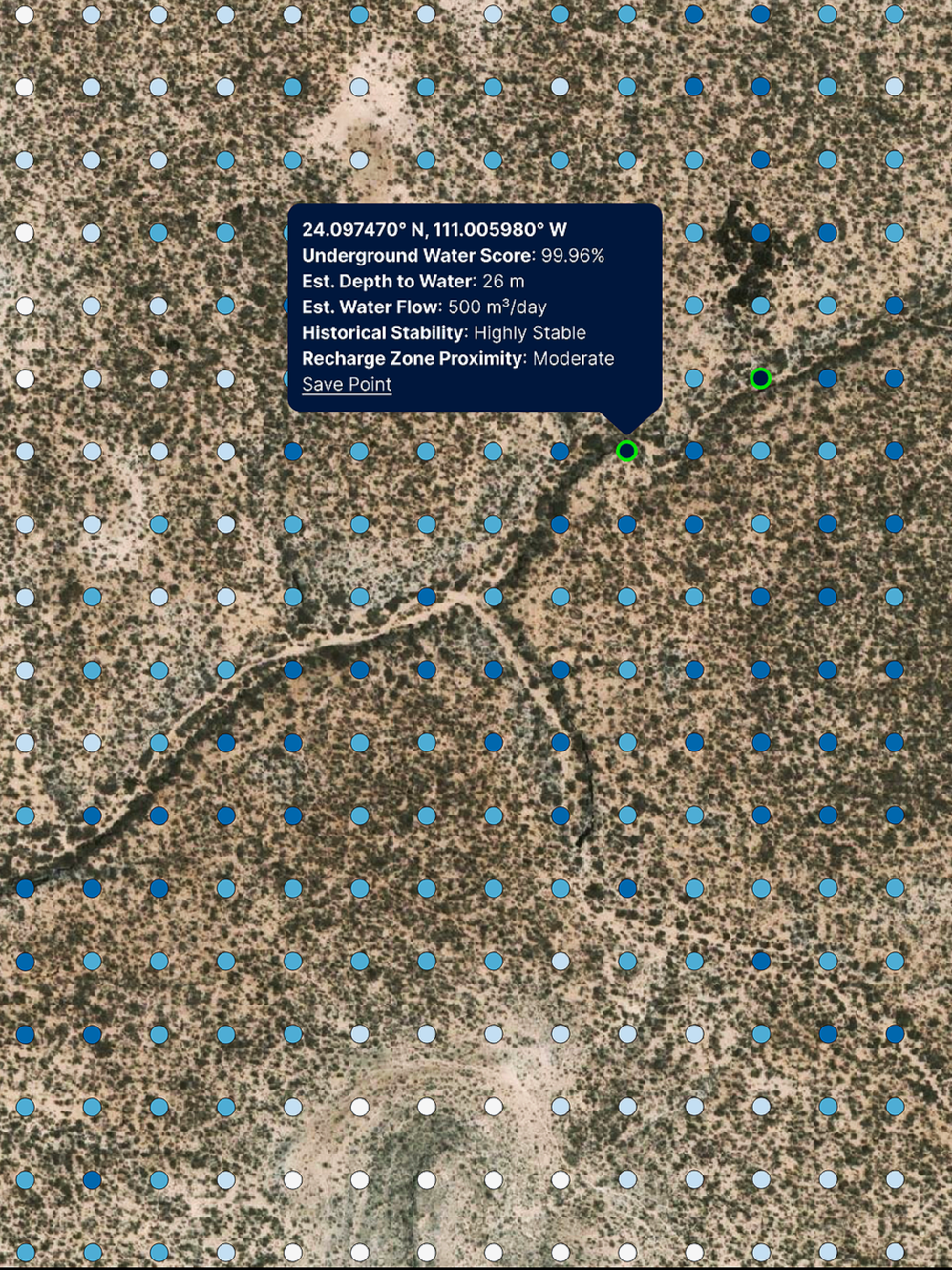 Modo Isla’s water analysis reveals where water exists underground, how much may be available, and how it flows across your land—using advanced satellite imagery, machine learning, and hydrological modeling.