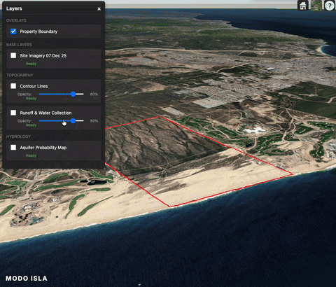 By integrating high-resolution satellite data, environmental analysis, and AI-driven insights, Modo Isla makes territory legible. It reveals how land systems behave over time—how water moves, how climate stresses accumulate, how ecosystems respond, and where human impact creates risk or opportunity.