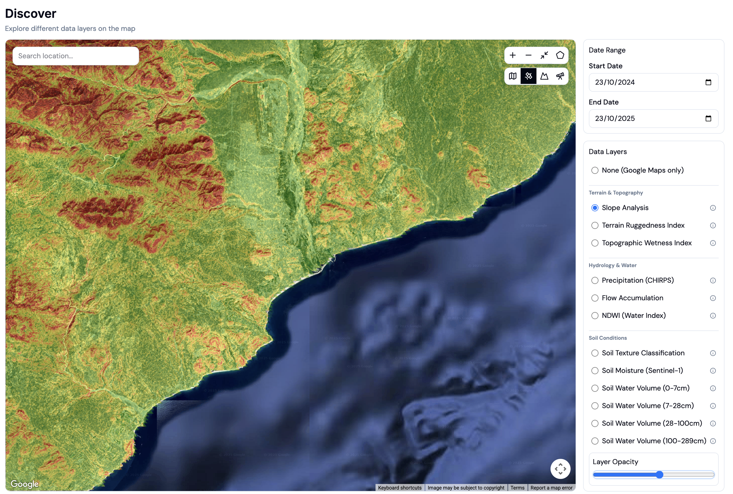 Platform curated for land opportunity origination, historical assessment, service zoning and master plan design
